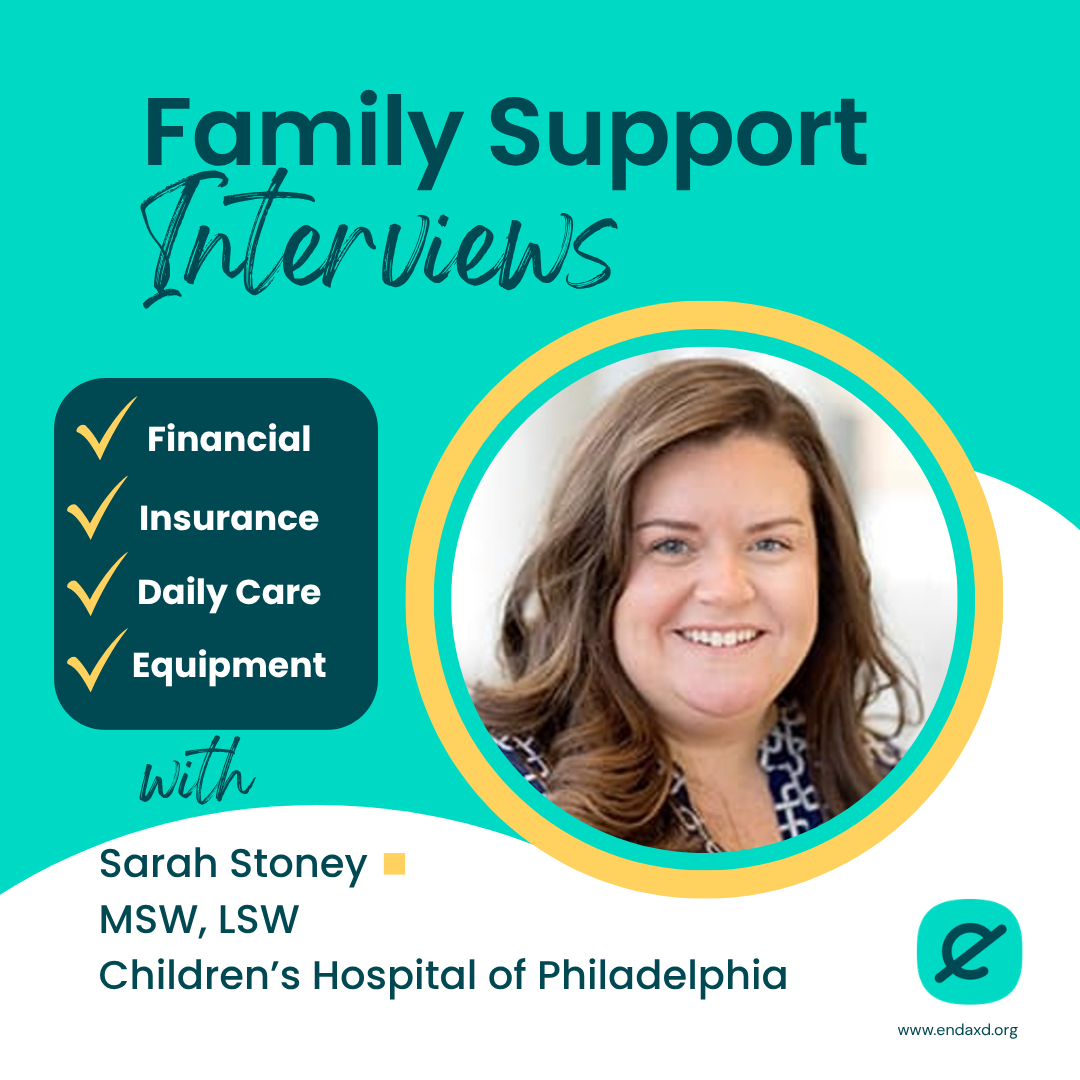 End AxD is proud to bring you an exclusive two-part interview series with Sarah Stoney, MSW, LSW, a social worker in the Pediatric Multiple Sclerosis Clinic, Neuromuscular Program, and Leukodystrophy Center at Children's Hospital of Philadelphia.